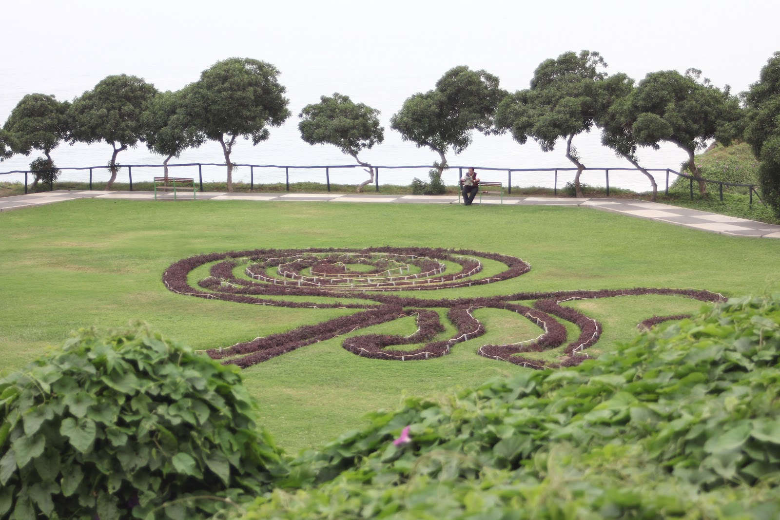 El parque Maria Reich en Miraflores. Esta mujer vino de Alemania hace muchos años, quedo fascinada con las líneas de Nazca y se quedo ahí cuidándolas y protegiéndolas. Hace algunos años murió y hicieron este parque en su honor, el parque tiene las figuras de Nazca hechas en flores. |