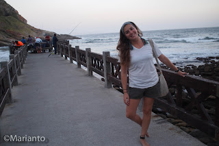 Salimos a caminar mientras atardecía. La playa es pequeña pero tiene un camino al lado que va por las piedras y esta llena de casas para alquilar y guesthouses. Comimos en el restaurante debajo del hostal, Melisa ocupada con su Blackberry y yo con mi Kindle.