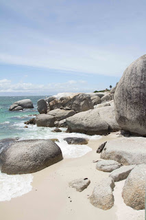 Manejamos hasta Gansbaii a unas tres horas de distancia. El paisaje yendo fue maravilloso. De estar rodeadas de montañas llenas de piedras gigantescas llegamos a unas llanuras hermosas, y de repente aparecian un par de montañas. El atardecer estuvo espectacular!